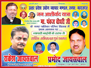 सिसवा बाजार-महराजगंज।  केंद्रीय वित्त राज्य मंत्री पंकज चौधरी का कल सिसवा में आगमन पर स्वागत की तैयारी व्यापारियों ने जोर शोर से शुरू कर दी है। व्यापारियों ने सिसवा नगर को स्वागत के बैनर से पाट दिया है। व्यापारीगण केंद्रीय वित्त राज्य मंत्री पंकज चौधरी को कल अपने बीच पा कर फुले नही समा रहे है।