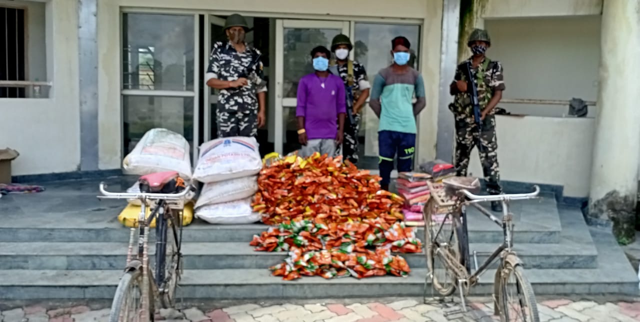 निवासी- करमा, जिला कपिलवस्तु (नेपाल) को अवैध रूप से दो साइकिलो द्वारा भारत से नेपाल 28 पैकेट रेडीमेट कपड़ा, 420 पैकेट तम्बाकू ,06 बोरी उर्वरक की तस्करी करते हुये गिरफ्तार किया।
