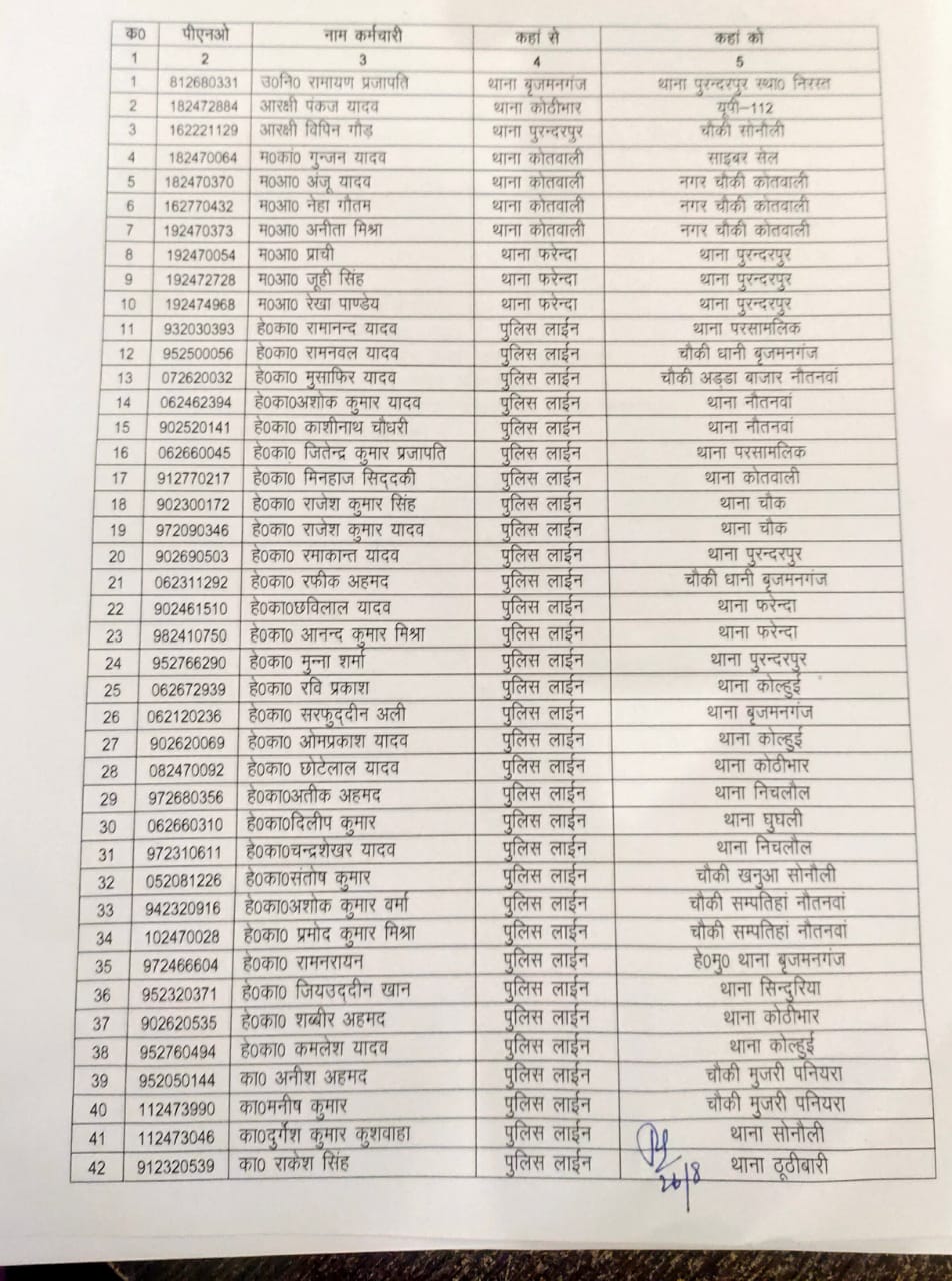 Maharajganj: पुलिस विभाग में हुआ फेरबदल, कौन कहा गया, देखे लिस्ट…