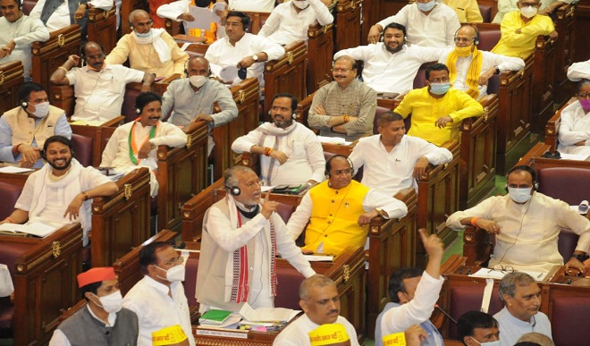 खन्ना ने कहा कि इस पर विस्तृत चर्चा तो गुरुवार को होगी लेकिन हम विशेष रूप से कहना चाहते हैं कि कि इस साढ़े चार साल की सरकार में जनता का नजरिया बदला है। लोक दृष्टि सबसे बड़ा मानदंड होता है किसी भी सरकार के मूल्यांकन का और आज जनता की आवाज की उत्तर प्रदेश की योगी सरकार ने नए रिकॉर्ड बनाए हैं और पुराने कई रिकॉर्ड को तोड़ा भी है। उन्होंने कहा ैइसलिए मैं पूरे सदन से अनुरोध करना चाहता हूं कि यह मात्र 1.33 प्रतिशत का अनुपूरक बजट है। अगर बिना चर्चा के ही सभी इसे पारित कर दें तो बहुत अच्छा रहेगा। नेता विरोधी दल के कहा कि प्रदेश सरकार ने महंगाई चरम पर पहुंंचाकर रिकार्ड बनाया है। इसी तरह से बेरोजगारी पिछले 41 साल का रिकार्ड तोड़ रही है। भ्रष्टïाचार बहुत बढ़ गया है। सरकार ने अपराध बढ़ाने और लोगों को अपमानित करने का रिकार्ड कायम किया है।